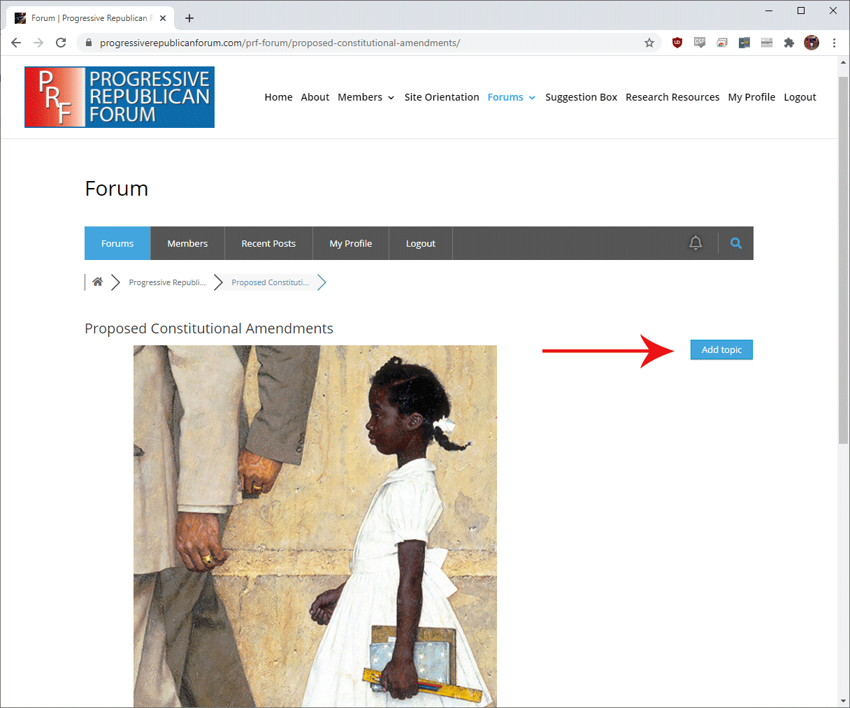 Each Major Forum then will have as many topics as members may wish to add. For example at the launching of this site Proposed Constitutional Amendments has a topic: A Proposed Amendment For Direct Election of the President.