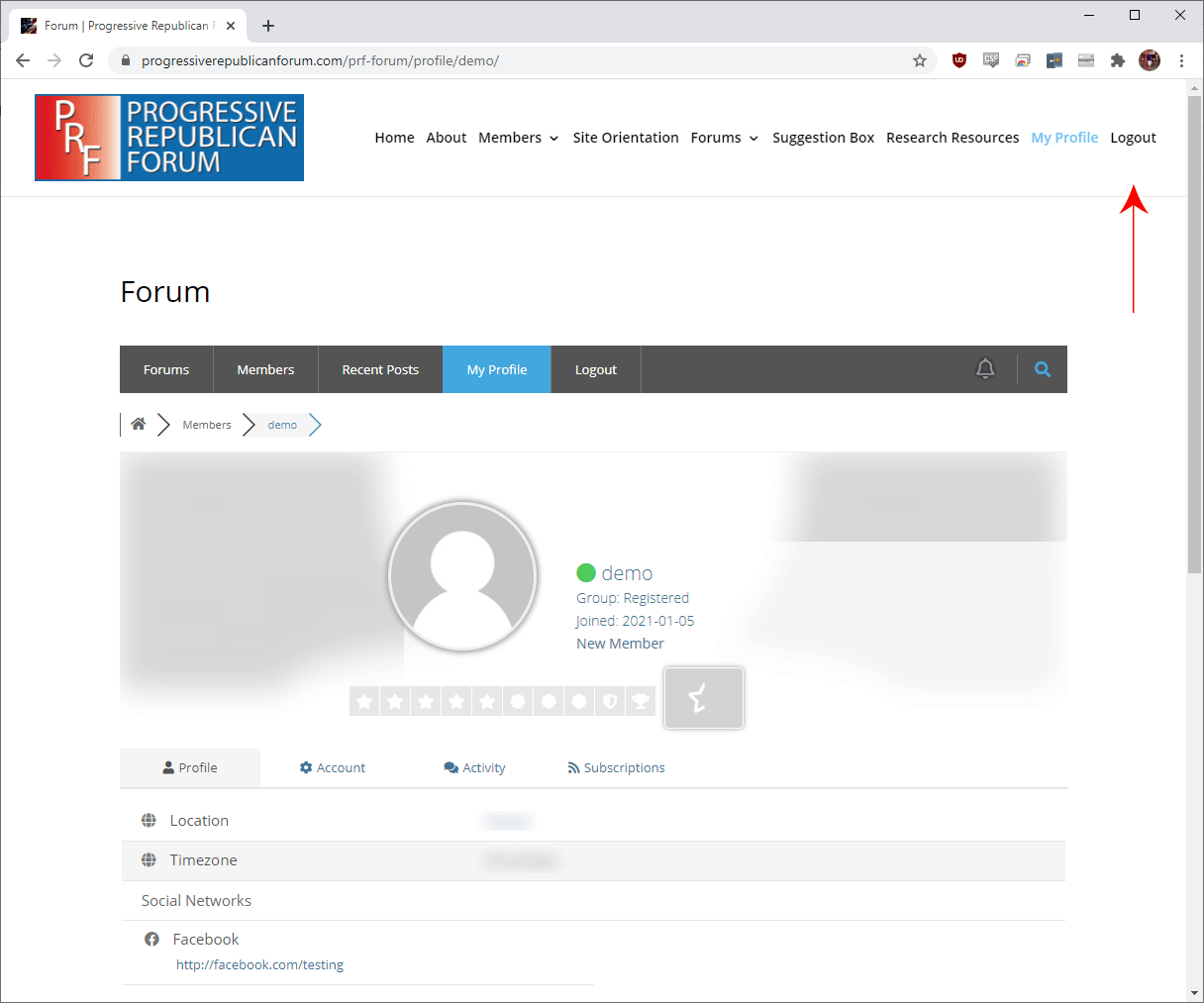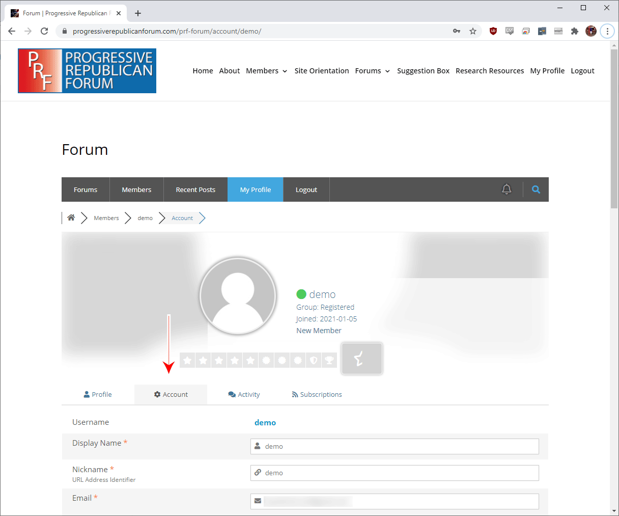 On your profile page, select the “Account” tab.